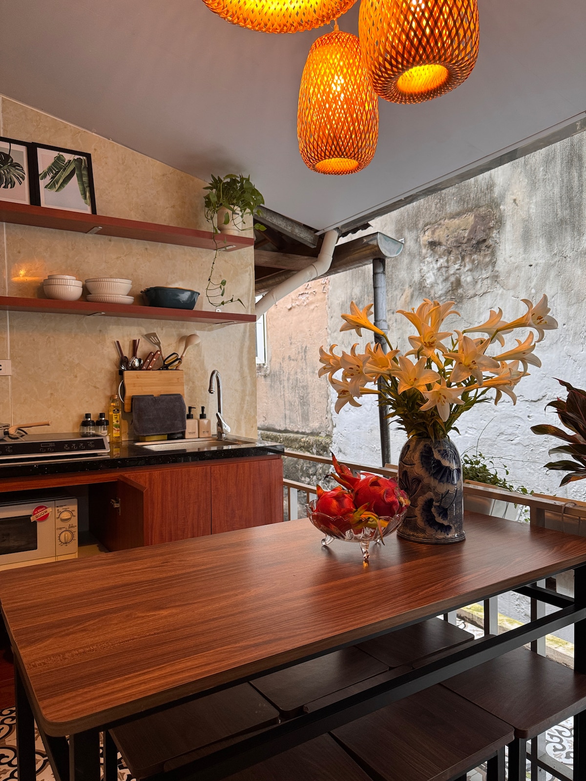 Un petit cadeau de notre part pour faciliter votre voyage à Hanoï : Séjournez 4 nuits ou plus → Bénéficiez d'un transfert aéroport aller GRATUIT Pour les séjours de 7 nuits ou plus → Bénéficiez d'un transfert aller-retour GRATUIT depuis et vers l'aéroport NẾP Living – où le vieux Hanoï rencontre le confort moderne. Nichée dans une petite ruelle de la rue Hàng Bồ, la maison offre une expérience véritablement locale au cœur de la Vieille Ville À quelques pas des rues animées, mais suffisamment au calme pour pouvoir se détendre, c'est un endroit où vous pouvez ressentir le rythme simple et authentique de la vie à Hanoï.