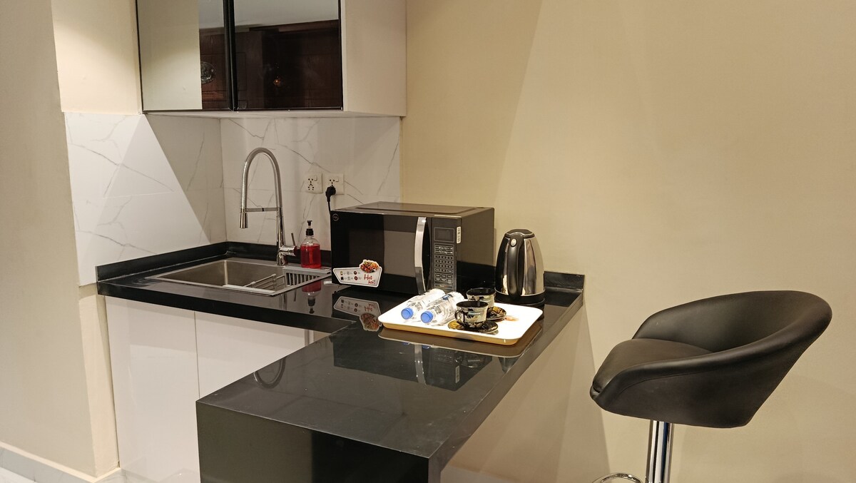 Bienvenue à Mirhaa Homes, un logement loin de chez vous même si vous n'êtes là que pour quelques jours. Découvrez un appartement luxueux, paisible et spacieux d'une chambre situé au Gold Crest Mall Dha Phase 4 Lahore. Une chambre confortable avec vue sur le balcon, une cuisine bien équipée, un salon moderne parfait et une salle de bain élégante. Un mélange parfait de confort et de convivialité. Nous sommes déterminés à rendre votre séjour mémorable à chaque fois. Alors qu'attendez-vous pour réserver votre appartement MAINTENANT ?