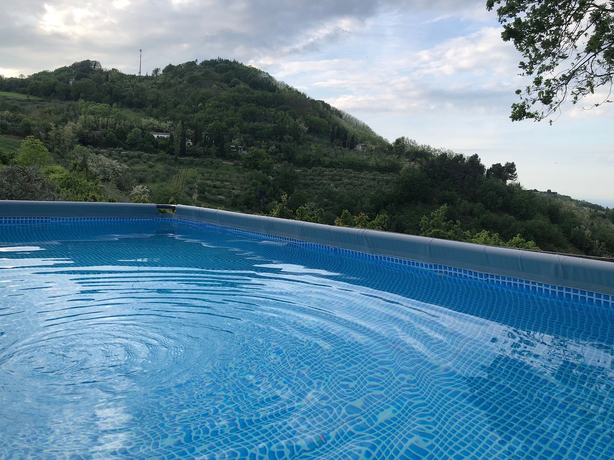 FAMILY HOUSE - VILLA (ad uso esclusivo) con piscina panoramica e magnifica vista su un paesaggio verde e collinare. Ubicata in collina vicino alle coste romagnole e San Marino; luogo ideale per l'ospite che desideri godere al contempo della quiete della campagna e delle enormi opportunità di svago offerte dalla frenetica riviera adriatica. Bellissima veranda esterna ,La piscina, dotata di una visuale unica, offre la possibilità di trascorrere le calde giornate estive in completo relax .