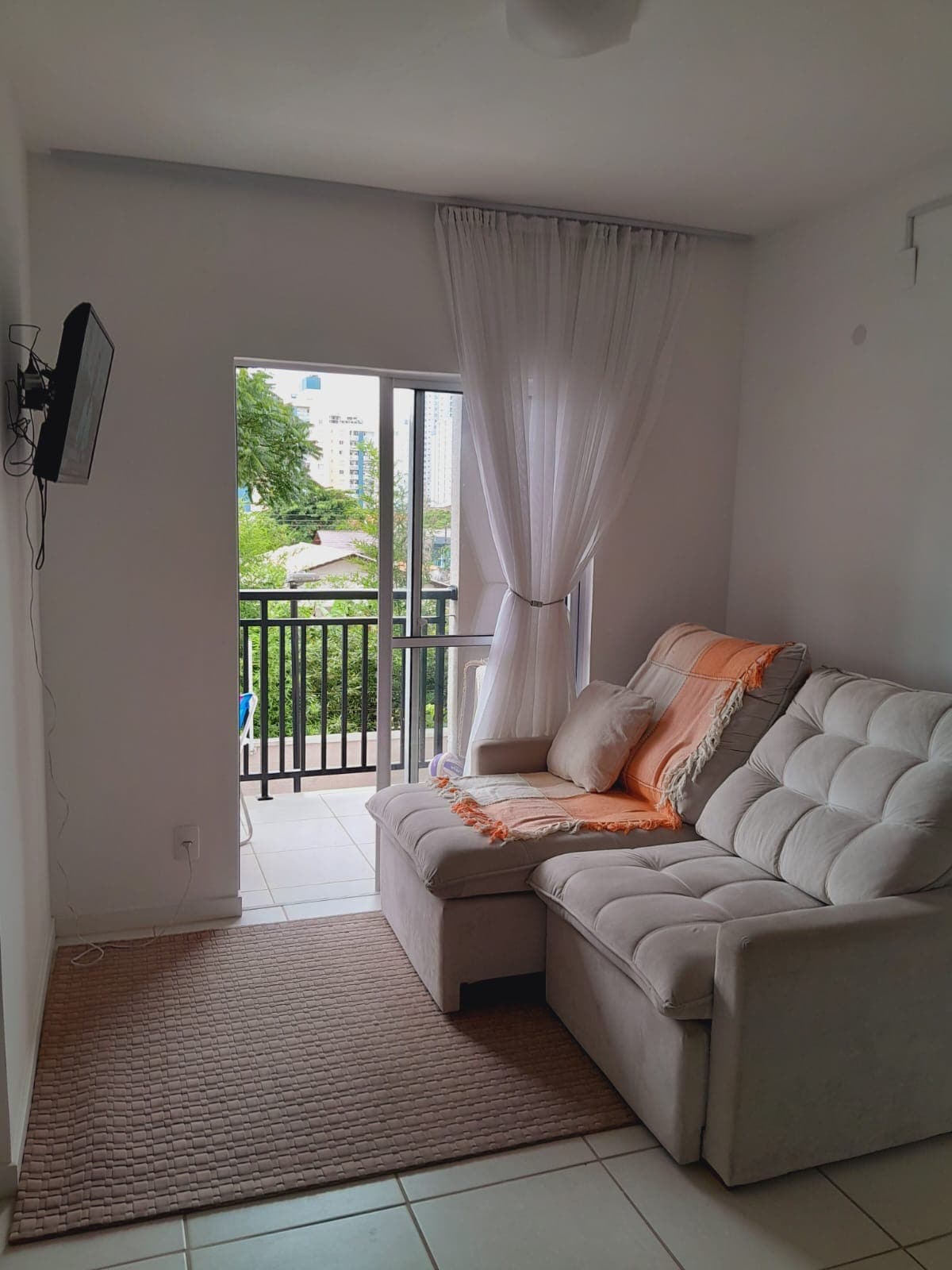 Apartamento com linda vista do mar. Rede de proteção em todas as janelas. Wifi própria. Ar condicionado em todos os ambientes. 2 quartos que acomodam até 4 adultos (18+) e 2 crianças com colchão. TV Smart 42 na sala. TV Smart 32 na suíte. Totalmente mobiliado com eletrodomésticos, utensílios de cozinha. Roupas de cama e banho. 1 vaga de garagem coberta próximo a porta. Localizado em belo condomínio, com piscina, academia, playground, sala de jogos, quadras de areia e grama, segurança 24hrs.