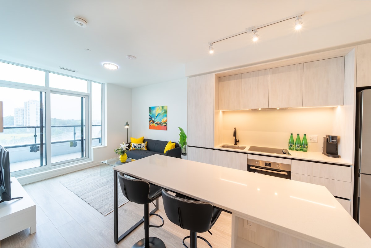 À seulement 8 minutes à pied du centre commercial Square One, ce condominium confortable est parfaitement situé — à 15 minutes de l'aéroport Pearson, avec un accès facile aux autoroutes et aux transports en commun. Le centre-ville de Toronto se trouve à 30 minutes en voiture (si la circulation le permet). À l'intérieur, vous trouverez un lit confortable, une terrasse privée pour vous détendre et la commodité d'une place de parking désignée gratuite incluse dans votre séjour.