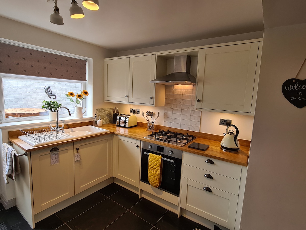 Oak Cottage est l'endroit idéal pour explorer Pickering et les environs de North Yorkshire Moors and Coast. Avec un parking pour 1 voiture et à seulement 5 à 10 minutes à pied du centre de Pickering et de la NYM Railway. Entièrement équipé pour un séjour confortable et relaxant avec beaucoup d'extras luxueux. Nous pouvons accueillir jusqu'à 4 personnes et un chien bien élevé est le bienvenu, mais doit être ajouté à votre réservation moyennant un petit supplément. C'est un chalet mitoyen sur la route principale.
