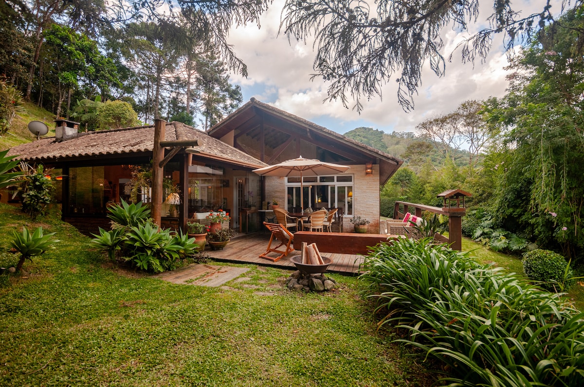 Venez vous amuser et vous reposer en pleine nature à Rio Bonito de Lumiar. Calme et intimité totale dans un jardin de rêve. Piscine, barbecue et sauna sec exclusifs pour vous. Maison bien équipée - cuisine complète, serviettes et linge de lit impeccables, Internet rapide, télévision connectée et bain à gaz. Près du village ou il y a des magasins et des options pour manger et boire. Nous avons reçu 1 chien de taille moyenne ou jusqu'à 2 petits chiens. Massage, cours de yoga ou Pilates et bains de forêt sur consultation et rendez-vous.