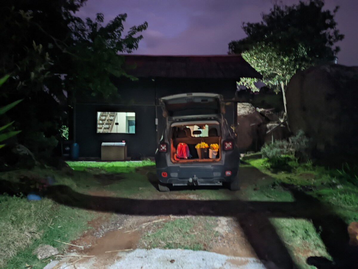Se você procura um lugar para fugir da correria e respirar ar puro, relaxar e aproveitar o que realmente importa. O chalé tem um quarto aconchegante com cama de casal e retroprojetor, banheiro espaçoso com vista pra natureza, sala com TV e sofá-cama, além de uma cozinha completa. Lá fora, o charme continua: lareira externa, churrasqueira e um bosque iluminado que deixa as noites ainda mais especiais. Perfeito pra quem quer se desligar da correria e viver dias tranquilos cercado de verde. 🌿
