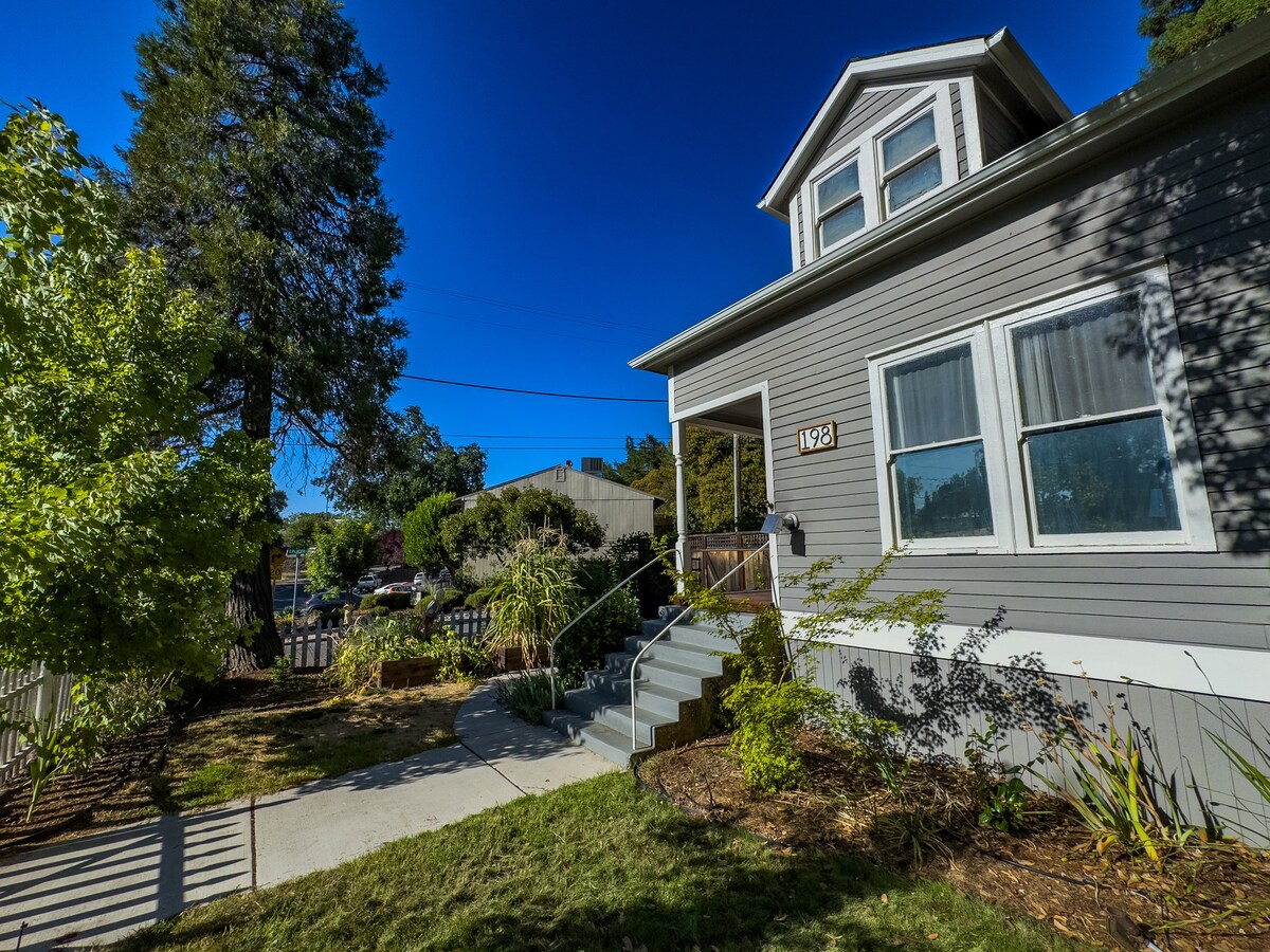 Welcome to the Olive Inn, a beautifully restored Victorian home built in 1898. You're just a short walk from the vibrancy of Old Town and Downtown Auburn! Start your day with locally roasted coffee in a fully equipped kitchen. Relax in comfortable rooms with modern amenities. Work remotely in a dedicated office with high-speed internet. Escape to the lush tiki garden, with a tropical aquarium, BBQ, and cooling misters.