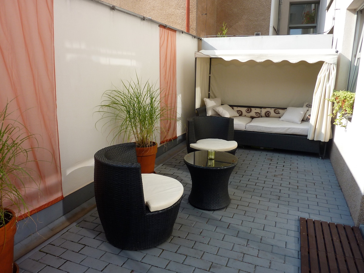 Studio confortable près du centre et de la nature, avec une immense terrasse
