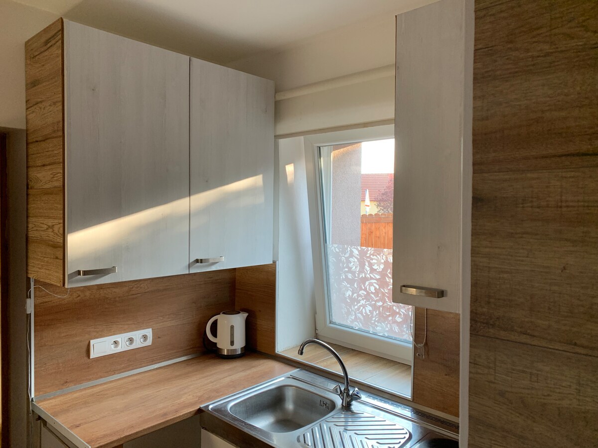 PETIT-DÉJEUNER de bienvenue et BIÈRE PILSNER inclus ! Ai-je votre attention ? Bonjour, je suis Ota et je vous souhaite la bienvenue dans mon appartement créé en 6/2022. Il est entièrement équipé, confortable et super propre ! + rez-de-chaussée + ÉNORME terrasse ; + lit super confortable ; + télévision 55' UHD avec Netflix À PIED : + à 2 min de CBS (pour les bus de Prague) et parking gratuit + à 10 min du centre-ville (3 min en tramway) + à 2 min de la rive + À 8 min du centre commercial ; + à 20 min du ZOO ; +5 min de Doosan (pour les affaires) Si vous avez des questions, n'hésitez pas à les poser. Je suis en ligne 16/7.