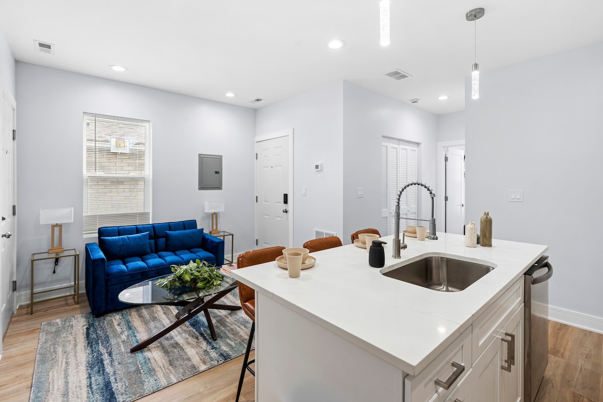 Ce condo chic mais accueillant de 2 chambres peut accueillir six personnes, avec deux lits doubles et une cuisine entièrement équipée. La salle de bain dispose d'un miroir intelligent lorsque vous êtes prêts à peindre la ville en rouge. Vous disposerez d'un salon pour vous détendre pendant que vous regardez la télévision ou rattrapez votre retard. Il y a un lave-linge et un sèche-linge dans l'appartement pour les séjours plus longs, ou si vous devez faire un lavage rapide. Les deux sont tout neufs. Pour ceux qui voyagent avec de jeunes enfants, nous avons un pack et jouons pour votre enfant.