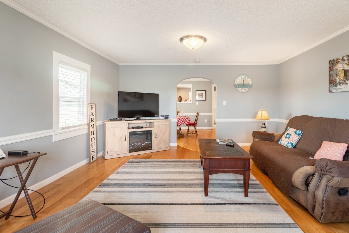 Vous vous sentirez comme chez vous lorsque vous entrerez dans notre charmant ranch rénové pour les familles, les couples ou les voyageurs d'affaires. Située juste à l'ouest de Goldsboro, la maison comprend 3 chambres charmantes avec des lits Queen Size. Une connexion Wi-Fi est fournie avec 2 téléviseurs intelligents, ainsi qu'un espace de travail. Commerces et plusieurs restaurants sont à proximité et à quelques minutes du centre-ville de Goldsboro, de l'hôpital UNC Wayne et de la base aérienne de Seymour Johnson. Les salles de mariage Cornealius Properties sont toutes deux à moins de 10 minutes.