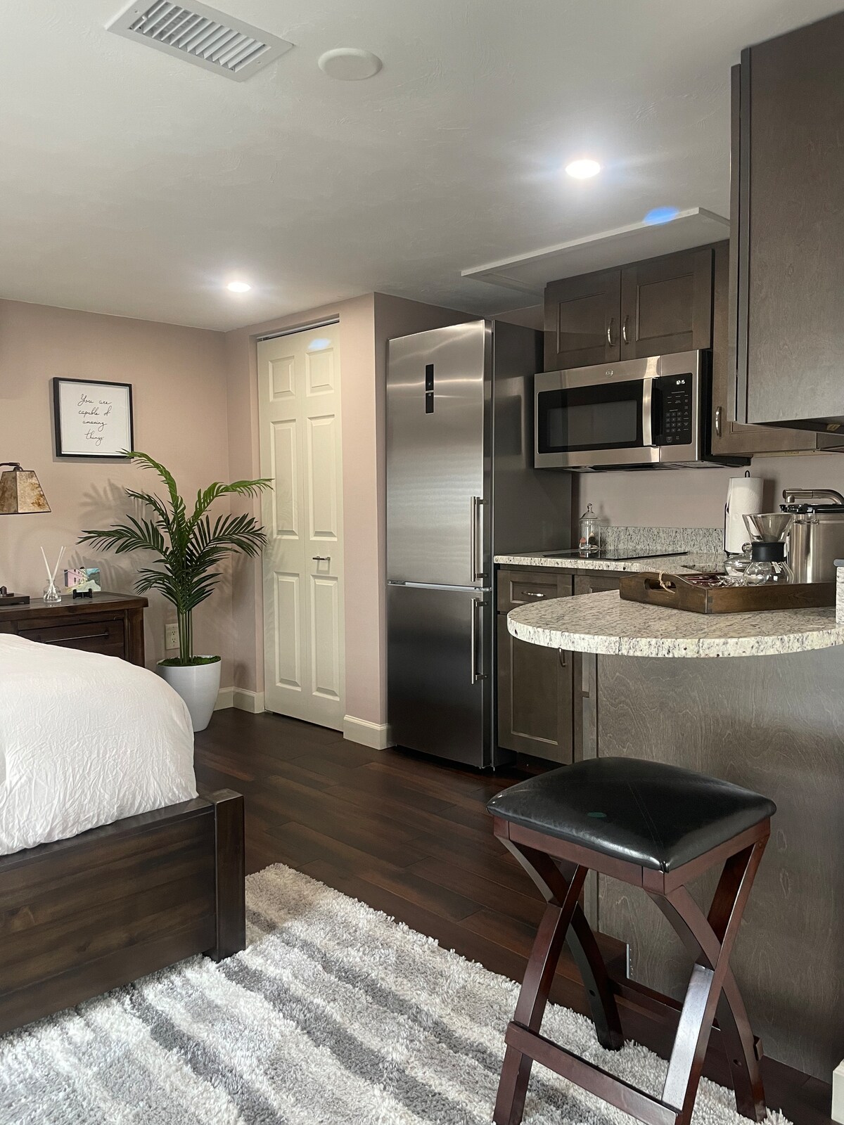 Ce studio confortable, propre et privé est l'endroit idéal pour se détendre, que vous soyez ici pour affaires ou que vous ayez passé toute la journée sur la plage ! Récemment rénové avec une table à manger pour prendre vos repas, de l'eau chaude, un lit confortable et une kitchenette bien équipée, vous ne manquerez de rien ici. Cet appartement est une suite attenante au salon principal de la maison et est entièrement privé, mais il y a un résident qui vit dans la partie principale de la maison.