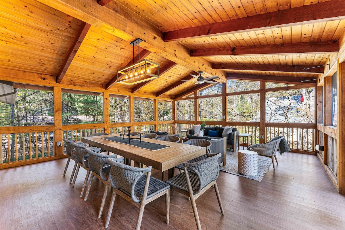 ⟶ Admirez paisiblement le lac depuis le salon extérieur avec table de feu ⟶ Parfait pour faire une pause dans le rythme effréné de la vie quotidienne ⟶ Rechargez avec un chargeur de niveau 2 pour véhicule électrique. Configuration adaptée aux⟶ familles. Les voyageurs aiment l'EMPLACEMENT PRATIQUE et la PROXIMITÉ DES ATTRACTIONS + COMMODITÉS Sophistication décontractée dans votre retraite de 1500 pieds carrés avec 3 chambres et 2,5 salles de bain sur le lac dans le Pinecrest Golf & Country Club. 8 couchages confortables dans notre maison de ville à deux niveaux au design impeccable qui rappelle la vie en cabane.