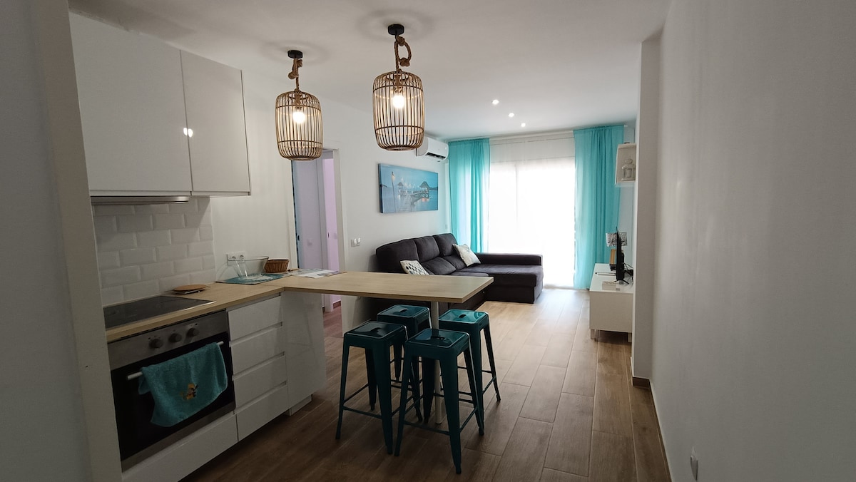 Tombez amoureux à nouveau dans notre loft avec vue sur la mer ! Vous pourrez voir la mer depuis le balcon, pendant que vous vous réveillez dans votre lit ou pendant que vous prenez une douche. Décoré avec soin et avec tout ce dont vous avez besoin pour que vous ne vous souciez que l'un de l'autre. Bamblue Boutique Apartments est situé à 500 m de la plage, avec le wifi haut débit, la télévision intelligente avec chromecast, la climatisation, le lave-vaisselle,... Profitez de votre balcon et des espaces communs : piscine, barbecue, terrasse, solarium,... Nous avons un parking (€) sur réservation préalable.