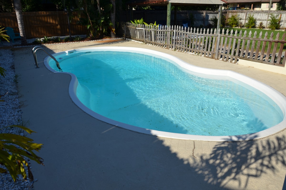 Votre paradis au bord de la piscine vous attend sur la côte de Palm Harbor. Avec des jardins tropicaux luxuriants et un centre-ville animé à quelques pas, vous ne voudrez peut-être pas partir, mais vous êtes également à quelques minutes de la plage de Honeymoon Island et du meilleur de Dunedin, Tarpon Springs et Clearwater Beach. [À partir d'octobre 2022 : la piscine a été entièrement refaite]