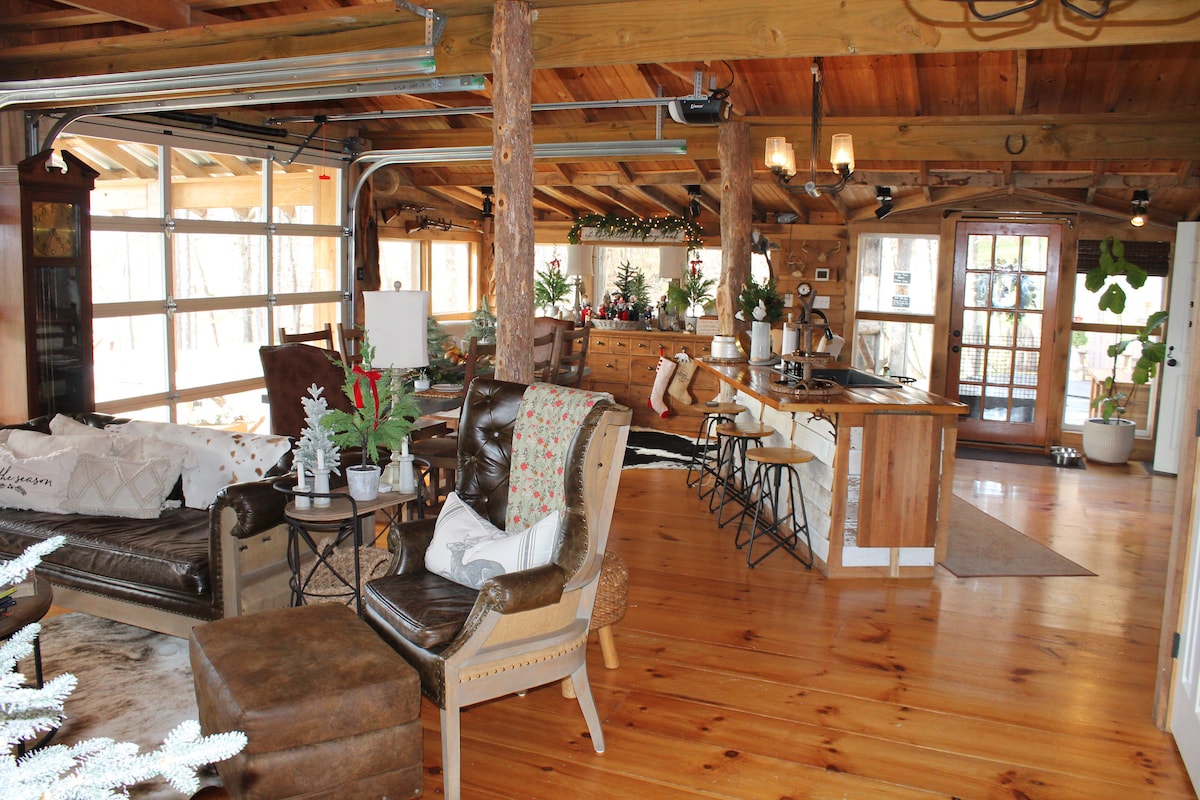Expérience à la ferme/détendez-vous et profitez de notre petit coin de paradis de 15 acres. Asseyez-vous sur la terrasse qui surplombe l'étang à poissons, regardez les mini-animaux jouer dans le champ. Voir des chèvres, des mini poneys/ânes. Parking sécurisé gratuit pour votre VTT/remorque de bateau. Cuisine entièrement approvisionnée, douche à l'italienne carrelée, lave-linge/sèche-linge, lit Queen Size, canapé-lit Queen Size, télévision 65" et barbecue à gaz sur la terrasse. Champ de 5 acres ouvert à l'exploration autour de l'étang. Nous adorons accueillir des voyageurs. Veuillez vous renseigner sur les réductions sur les séjours prolongés pour les infirmières en déplacement ou les travailleurs à distance.