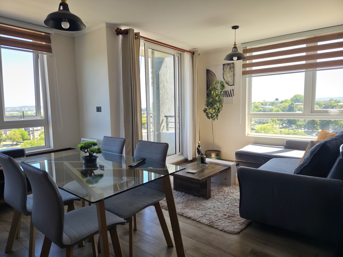 Bel appartement neuf, ensoleillé, à quelques pas de tout (centre commercial, supermarchés, locomotion, etc.) et à proximité du centre de Concepción. Entièrement meublé et confortable. Équipé pour que de 1 à 4 personnes soient à l'aise et comme « chez elles ». 2 chambres avec salles de bains en suite, 3 lits et 1 canapé-lit, WIFI et cuisine équipée. Il dispose d'un parking couvert et d'une sécurité 24 h/24. Excellent endroit pour se reposer et profiter en famille