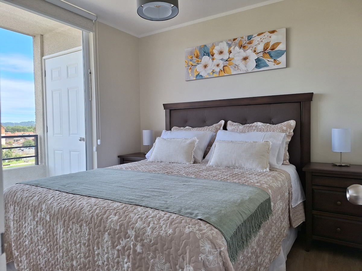 Appartement entièrement équipé d'une chambre, salle de bains privative. Cuisine équipée, plan de travail en granit. Parking pour 1 voiture. Appartement pour 3 personnes. Excellent emplacement, à proximité des supermarchés, banque, blanchisserie, pubs et restaurants, centre commercial, et transport à la porte. Belle vue sur la lagune Chica de San Pedro de la Paz. À 10 min du centre de Concepción, à 12 min de l'aéroport, à 15 min du terminal de bus Collao. Portier 24 h/24.