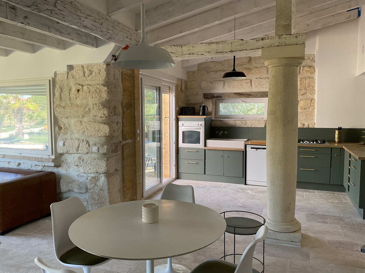 "La Maison aux Oliviers" est un petit mas de charme de 90m2, climatisé, indépendant et situé sur une ancienne oliveraie, au calme dans un jardin paysager offrant une belle piscine privative chauffée et sécurisée. Son large auvent offre la possibilité de vivre à l'extérieur à l'abri du soleil et du vent (mistral). Proche du centre historique, du marché local et des commerces (à pied), elle est parfaitement équipée pour le télétravail (Fibre haut débit)