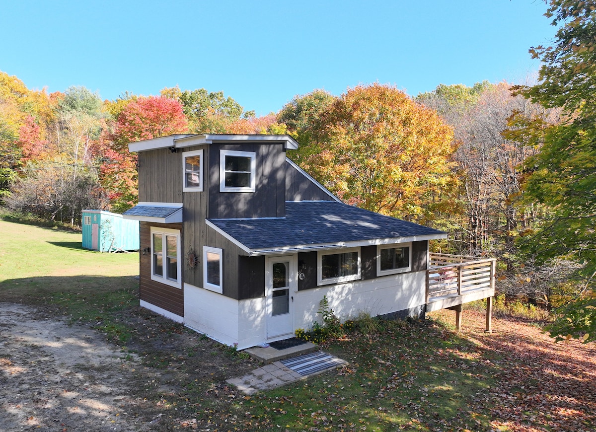 Profitez d'un séjour paisible dans cet espace confortable et créatif. Situé sur 10 acres de jardins et de bois, ce chalet est parfaitement situé pour explorer l'ouest du Massachusetts, avec des endroits comme MASS MoCA, Shelburne Falls, Tanglewood et Northampton, tous à moins de 30 minutes à 1 heure de route. À l'étage, il y a un lit Queen Size et une salle de bain complète, tandis qu'en bas, il y a une cuisine fonctionnelle, un bureau, de grandes fenêtres et un espace de vie avec un canapé-lit complet. Nous vivons dans la maison principale sur la propriété, mais respectons votre vie privée - voir les photos !