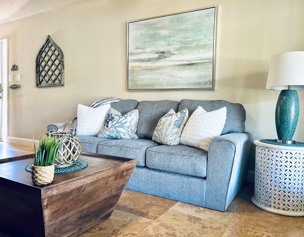Nous disposons de tout le nécessaire à un tarif avantageux. La chambre est dotée d'une cuisine entièrement équipée avec réfrigérateur, cuisinière, four à micro-ondes et grille-pain. Grande télévision connectée et accès Wi-Fi. Comptes Disney + (avec Hulu dans l'application), Fandango, Paramount+, HBO, Peacock, ESPN et Vudu configurés sur la télévision. Le confort est clé avec un lit d'oreiller king size super doux et des draps et une couette de la plus haute qualité. Le canapé se déplie en lit Queen Size. Belvédère fermé avec sièges entre les logements 2 et 3 pour tous les voyageurs. Grils individuels et foyer