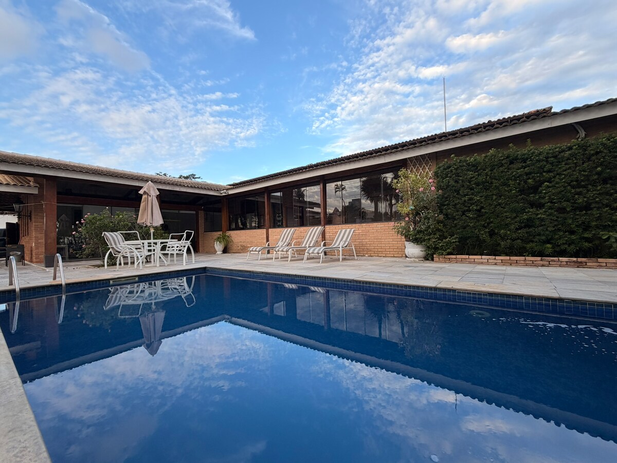 Magnifique maison à Guaruja dans la copropriété Acapulco ! La plage de Pernambuco se trouve à 600 mètres de l'entrée de la copropriété. -4 chambres (toutes avec balcon), 4 suites, salon pour 4 pièces, cheminée, TV 65 pouces avec internet 100G, salle à manger, balcon gastronomique avec barbecue et four à pizza. -Piscine, sauna. - Devant la place - Réservoir d'eau souterrain de 10 000 litres. La copropriété dispose des services suivants : supermarché, centre commercial, pizzeria, service d'urgence, animalerie, coiffeur.