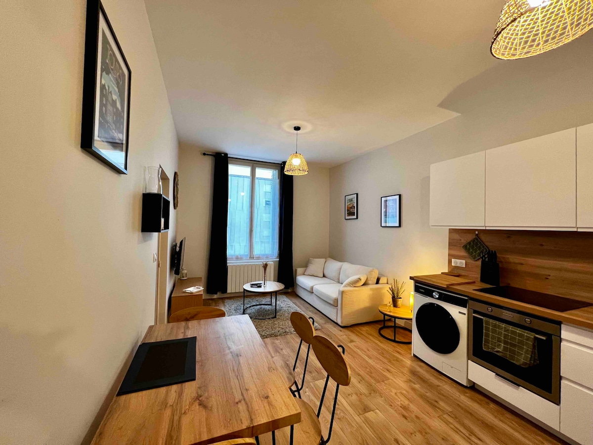 Covid-19 : Studio désinfecté selon les recommandations de l'ARS Situé en plein cœur historique du Vieux Tours à proximité immédiate des restaurants et 2min à pied de la célèbre Place « Plum », studio (20m²) tout équipé et refait à neuf (isolation phonique et lit ferme en décembre 2022). Logement équipé d'une climatisation réversible. Gare à 15 min en tramway ou bus, arrêt de bus "Grand Marché" à 4min Parkings à proximité. Faculté des Tanneurs à 3min à pied, CHU Bretonneau à 20 min à pied.