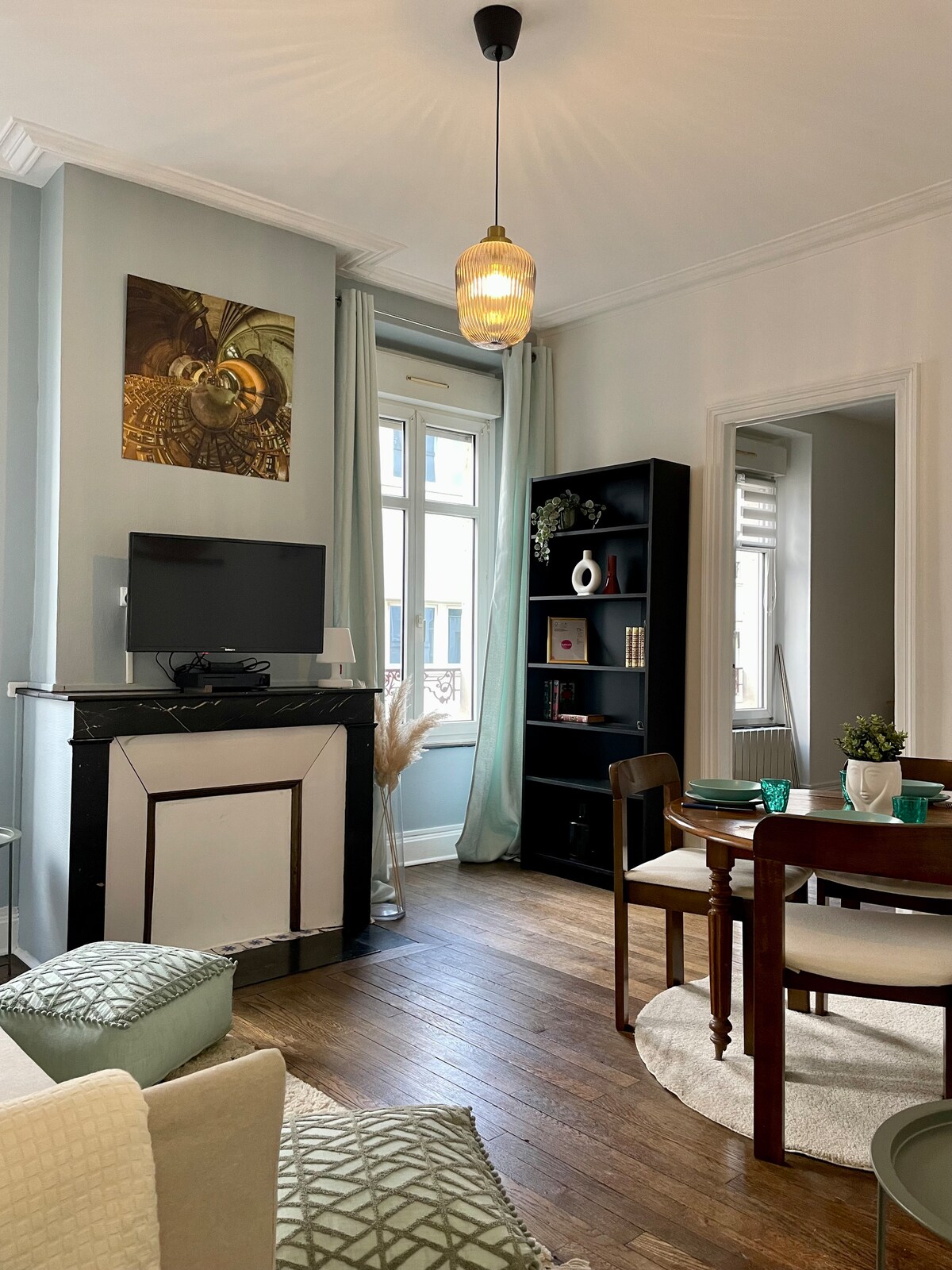Bienvenue dans votre cocon nancéien ✨😊 À 10 minutes à pied de la gare et du centre-ville, cet appartement de 41 m² vous accueille dans une atmosphère raffinée et chaleureuse. Vous trouverez deux chambres en enfilade, un salon lumineux ainsi qu’une cuisine entièrement équipée. Le Wi-Fi haut débit et les prestations soignées assurent un confort optimal, que ce soit pour travailler ou se détendre 🏡 Chaque détail a été pensé pour vous offrir une expérience agréable et qualitative au cœur de Nancy.