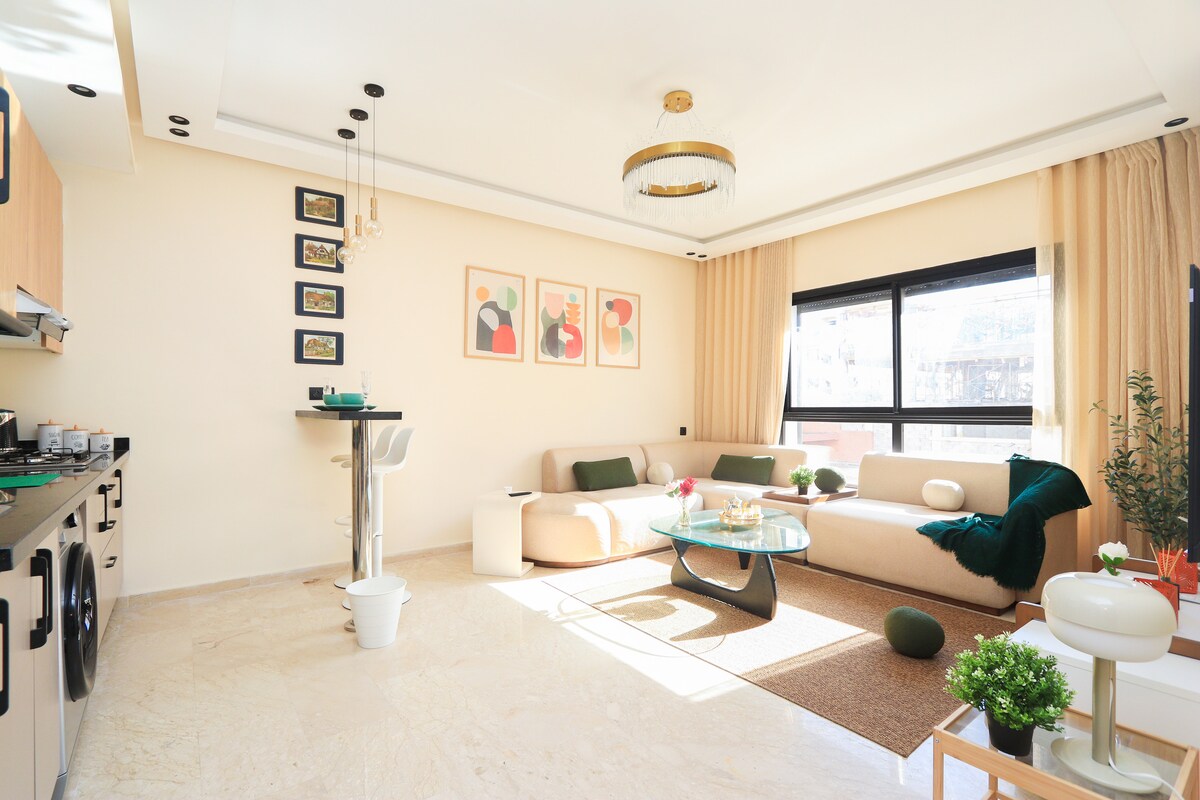 Bienvenue dans ce magnifique appartement situé dans la Nouvelle Médina de Casablanca, au coeur du quartier Habous. Profitez d’un espace raffiné et soigneusement conçu, avec un balcon lumineux, une décoration élégante et des équipements modernes — idéal pour un séjour confortable. Une cuisine entièrement équipée et un parking sécurisé vous offrent commodité et tranquillité d’esprit. Un refuge calme et contemporain où chaque détail a été pensé pour rendre votre séjour inoubliable.