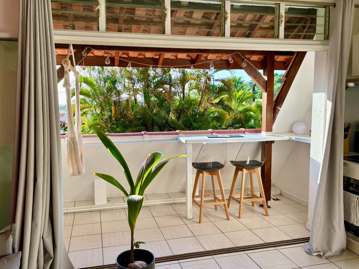 Notre bas de villa est situé dans un quartier calme et central à 2 min de la plage en voiture. environ 60m2 pour ce logement bien ventilé avec une terrasse extérieure pour les repas ou repos dans le hamac, une cuisine équipée, 1 chambre climatisée, toilettes, salle de bain. Proche des plages de schoelcher, de l'université ou des principaux supermarchés...Desservi par des arrêts de bus à proximité. Son emplacement central permet de se déplacer facilement dans toute l'île.