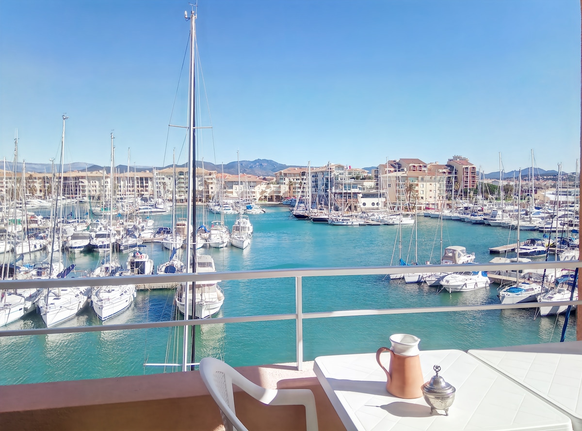 Réduction -20 % pour tout séjour de 7 nuits ou plus Vue mer et port envoutante , grand balcon sans aucun vis à vis , accès direct à la grande plage de sable , équipé pour 4 personnes, wifi , piscine, climatisé,parking , réservé en sous sol