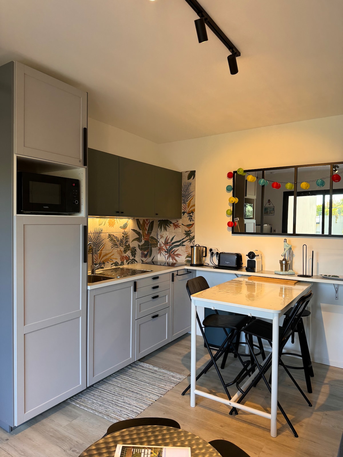 A deux pas de la Mer et de tous les sites de commodités... Studio confortablement aménagé, au calme, idéal pour 2-3 personnes : - Parking privé sécurisé gratuit - Canapé lit de 160*210 + lit simple - Cuisine équipée - Coins repas intérieur et extérieur - Terrasse avec vue - Salle de bain équipée - Toilettes séparée - Lit parapluie et chaise haute à disposition sur demande Le linge de lit est fourni sur place. Prévoir les serviettes de bain.