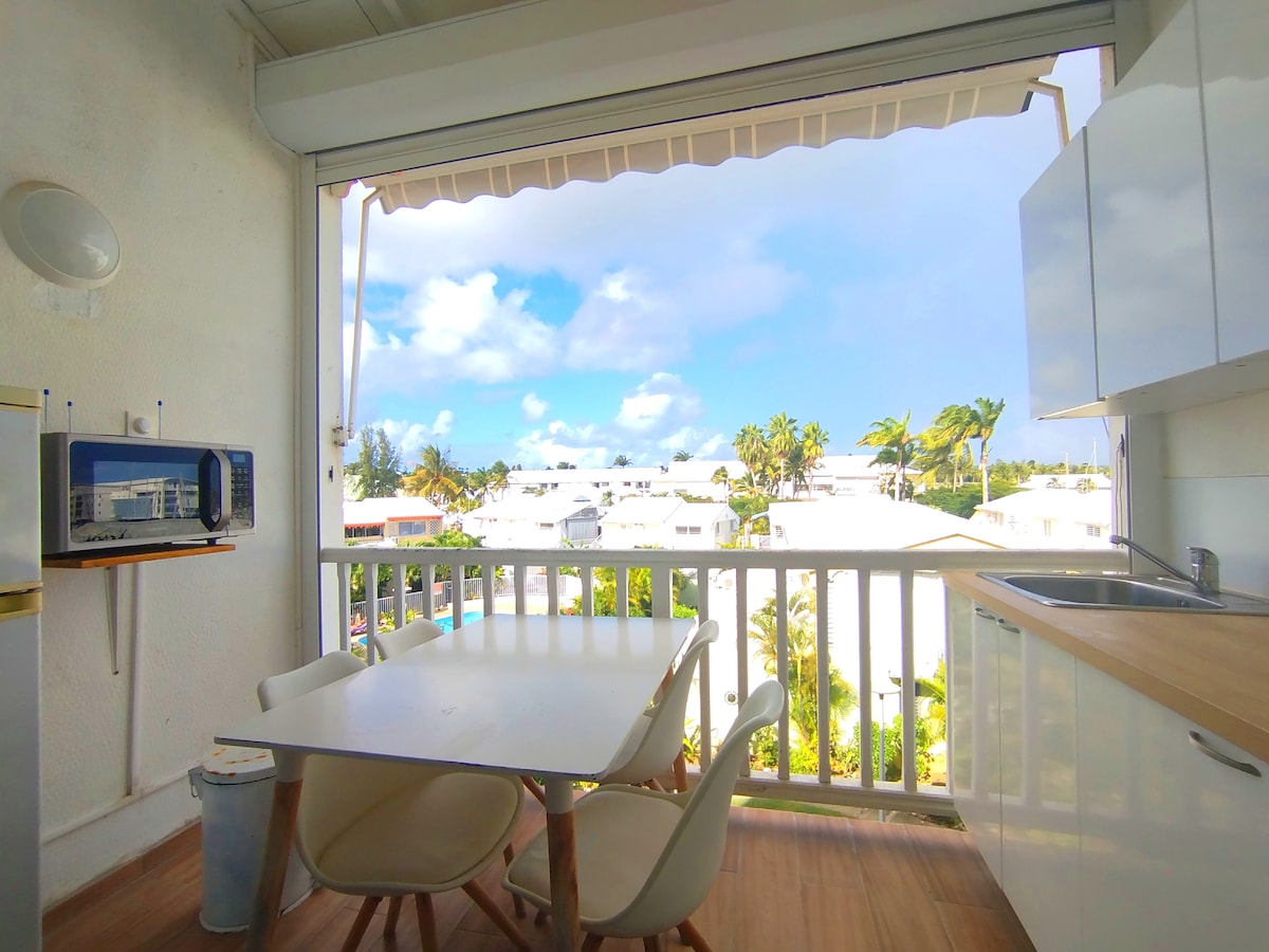 Bienvenue à TerraNova, notre studio situé à la Marina de Saint-François. L’appartement dispose d'une terrasse avec vue dégagée sur le golf, idéale pour se détendre. La résidence est calme, sécurisée, et une grande piscine pour se relaxer après une journée à la plage. Tout est accessible à pied : commerces, restaurants, marché, banques, casino, excursions en bateau. L'Anse Champagne offre une diversité d'activités nautiques. Le point de départ parfait pour vivre une expérience incroyable !
