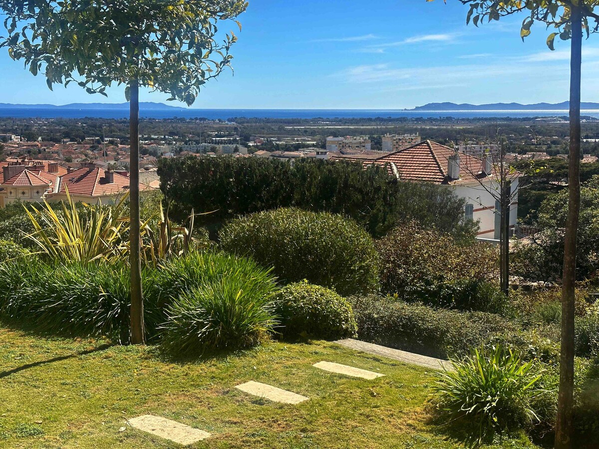 Résidence bord de mer avec sa plage privée-3ème Etage T2 45M2 refait à neuf-Equipé d'une cuisine ouverte sur un salon/salle à manger-chambre-salle d'eau/toilettes+terrasse 8M2 surplombant la mer-vue à 180° sur les Iles d'Or-La Presqu'ile de Giens et Brégançon-équipée de transats+table+chaises- ventilateur - ascenceur-parking-terrain de pétanque et de volley-tables de ping-pong-piste cyclable à 50m-sentier de promenade- Aéroport à 3km- plages et port de plaisance à proximité-
