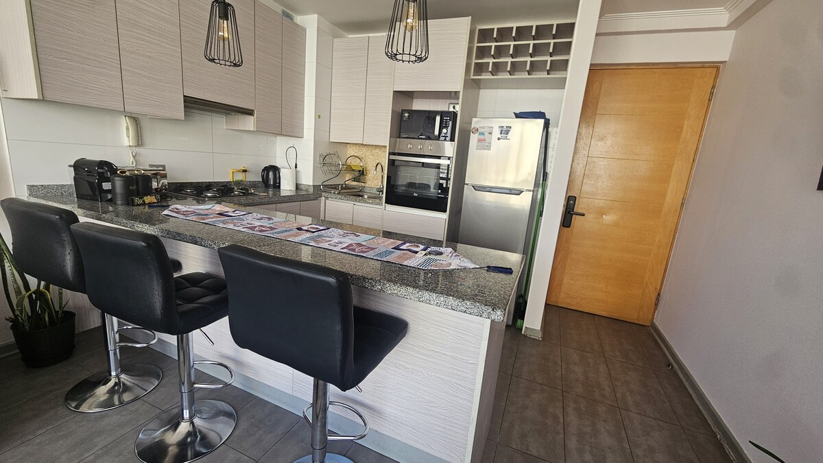 Appartement moderne dans le quartier Cavancha I, 11e étage, idéal pour les courts ou longs séjours. Situé à quelques pas de Playa Cavancha, des supermarchés, des jeux et des attractions. Le bâtiment dispose d'une piscine, d'une salle de sport et d'une haute sécurité. Accès avec serrure intelligente et enregistrement autonome, pour une arrivée confortable et sans soucis. Idéal pour se reposer, travailler et profiter d'Iquique.