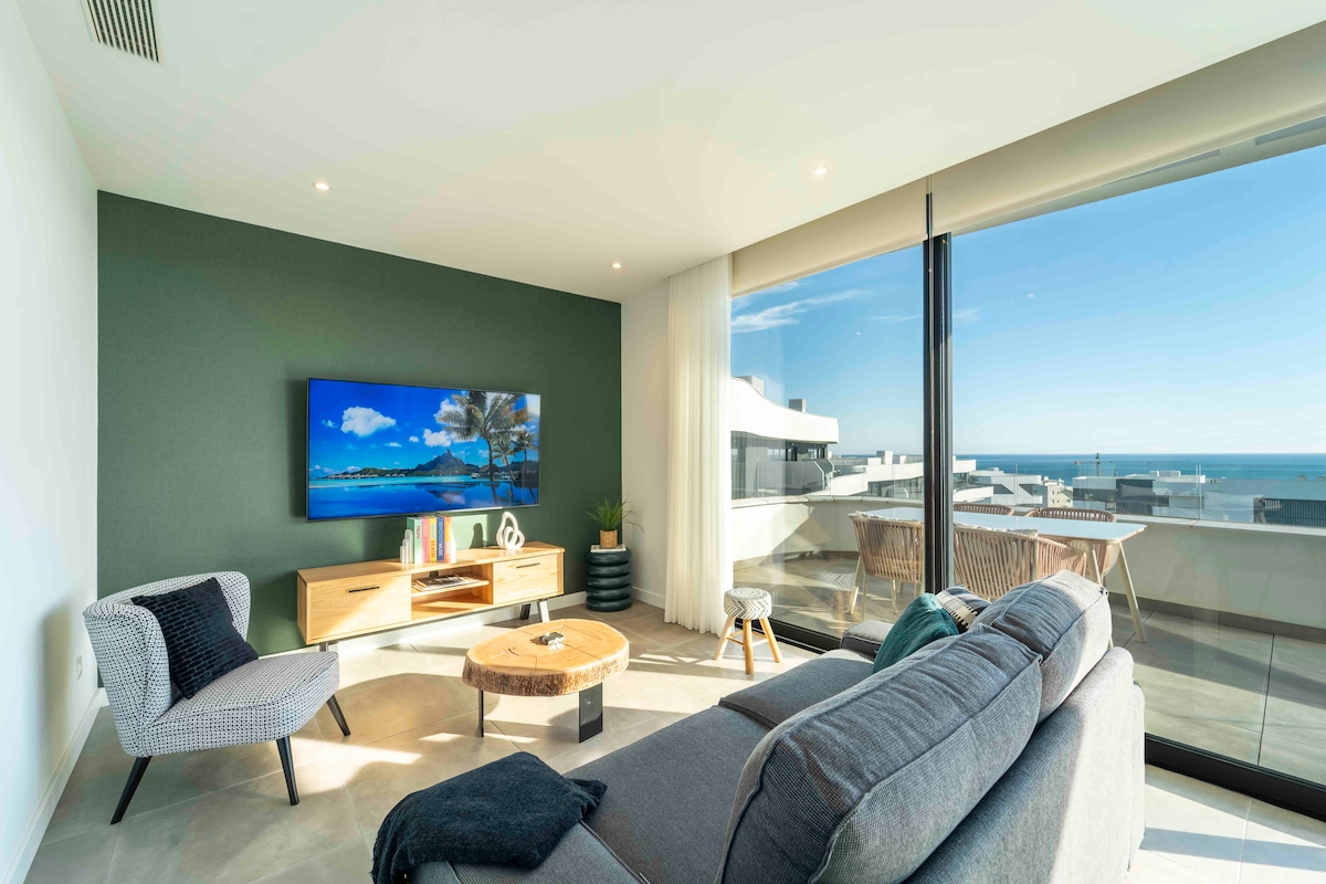 Welcome to the Stunning Apartment with Unbelievable panoramic sea views in Upscale Newly Build Urbanisation "Middel Views". This spacious super modern apartment offers 5+ stars Hotel experience. Unbeatable location, just few steps from Carvajal train station which will take you to Malaga airport. One of the most beautiful beach, Playa Carvajal, on Costa del Sol just 250 m. away. Restaurants, Bars, Supermarkets are in walkable distance.