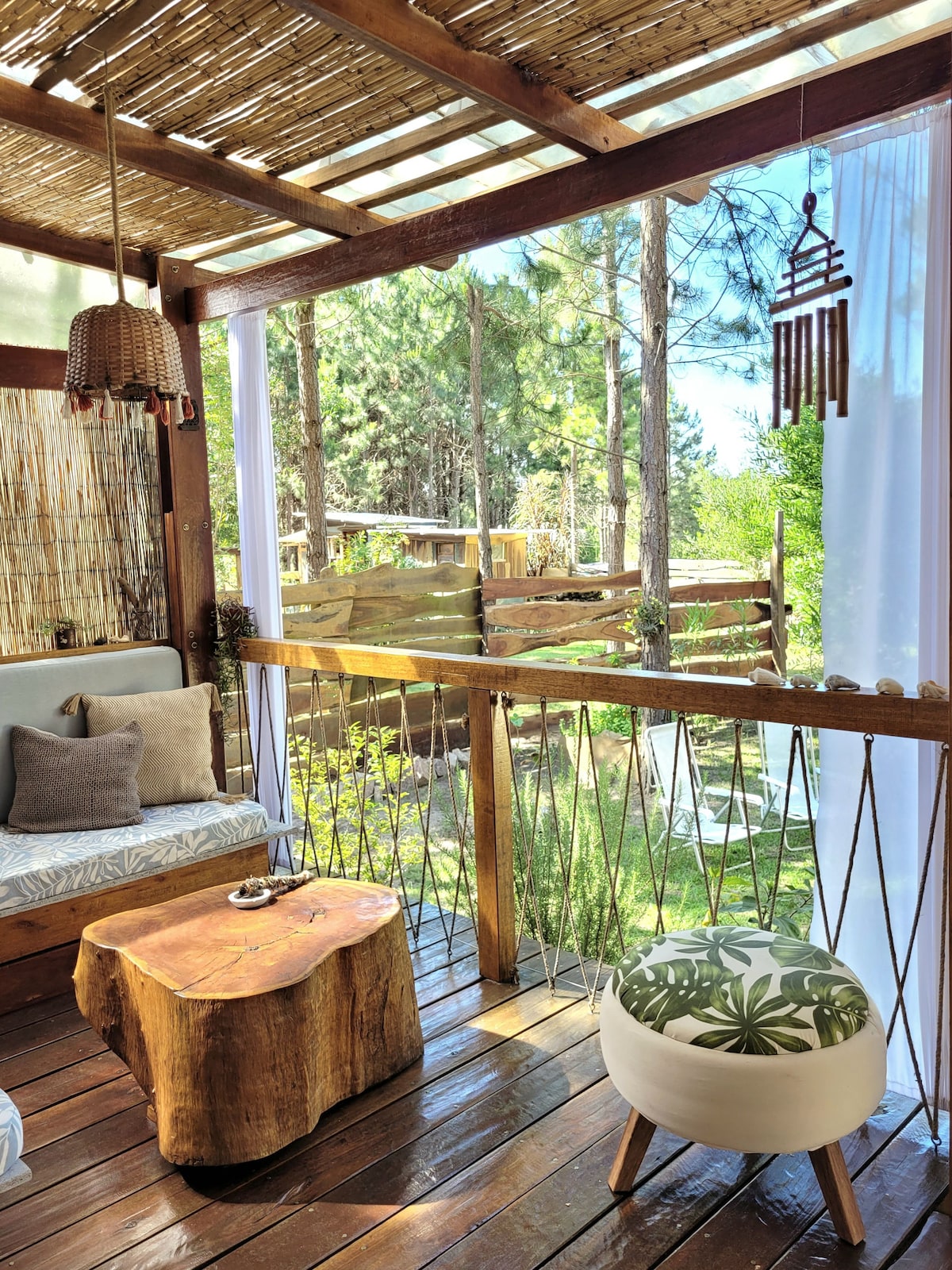 Luz das Acácias est une cabane en bois de 37 m², idéale pour se reposer en couple dans la tranquillité et l'intimité de la forêt. L'espace dispose d'un jardin exclusif de 500 m² entouré par la nature, un grand salon extérieur avec barbecue et cuisinière pour profiter des chaudes nuits d'été. Pour mieux nous connaître, vous pouvez nous trouver en tant que @luzdasacaciasuy