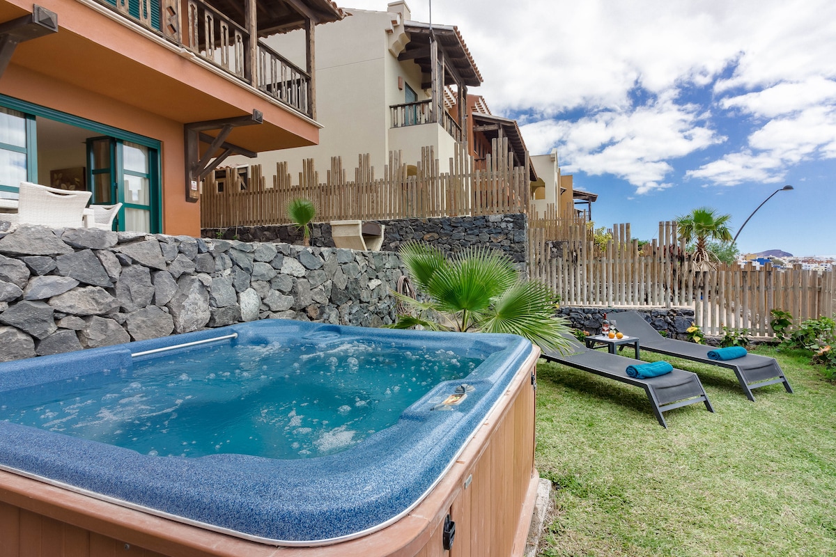 Maison mitoyenne exclusive avec terrasse et jacuzzi panoramique. Profitez de la salle multifonction insonorisée avec cinéma, PlayStation et espace fête ! Détente assurée avec piscines en copropriété, barbecue dans la cour tropicale et intérieurs élégants. Équipements premium : cuisine entièrement équipée, climatisation dans chaque chambre, garage privé, Wi-Fi rapide et lave-linge/sèche-linge. L'environnement parfait pour des moments inoubliables entre amis ou en famille, à une courte distance des attractions de Costa Adeje.