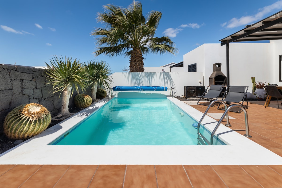 PISCINE CLIMATISÉE. Villa de Grand Luxe GL 5* récemment construite en 2017, située dans la ville ensoleillée de Playa Blanca. Elle a une capacité maximale de 7 personnes et ses principales caractéristiques sont qu'il s'agit d'une villa lumineuse très spacieuse avec des finitions et des matériaux de la plus haute qualité. Elle est parfaitement équipée pour que vous passiez des vacances inoubliables et que vous reveniez sur cette île magique et charmante. Elle dispose du WIFI, TV CURVE 50" SMART- TV, SATELLITE 350 CHAÎNES, TABLETTE.