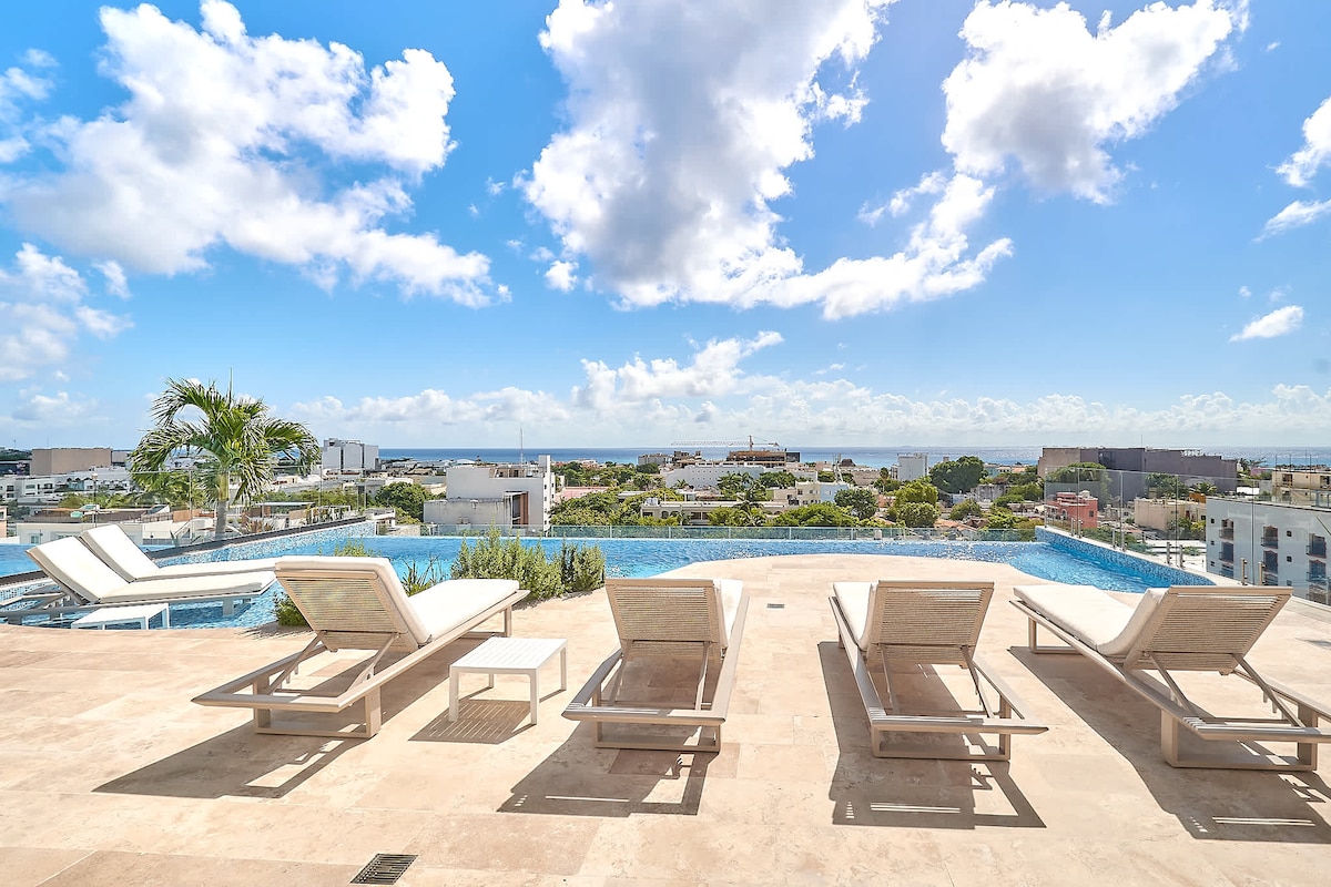 Vous aurez les meilleures vues de la ville ! Profitez de votre oasis privée sur le toit avec piscine et vue panoramique sur Playa del Carmen et la mer des Caraïbes. Cette suite penthouse se trouve à quelques pas des plages, des restaurants et des magasins. Situé sur la célèbre Quinta Avenida, notre refuge, à StayCielo, est assez proche pour marcher jusqu'à la vie nocturne, mais assez loin du bruit pour que vous puissiez profiter d'une soirée paisible à la maison. À 5 min à pied des clubs de plage Martina et Encanto ainsi que d'excellentes options de restauration. Envoyez-moi un message pour discuter !