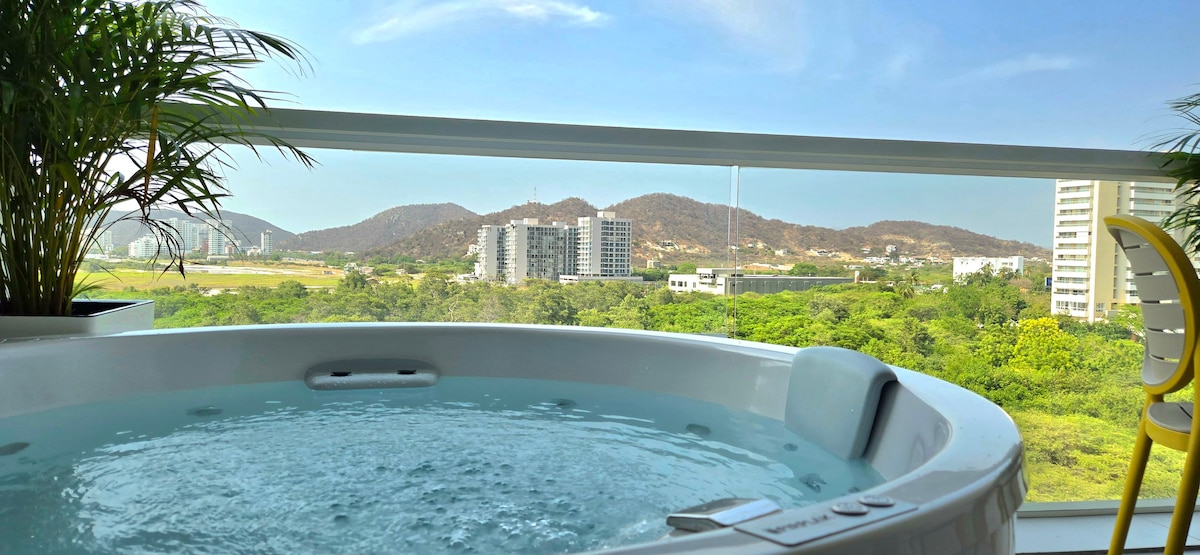 Vivez un séjour inoubliable en bord de mer. Profitez d'espaces confortables avec Wi-Fi, bureaux, cuisine moderne, télévision et climatisation. Profitez des espaces de bien-être tels que la piscine, le jacuzzi, le sauna, la salle de sport et les massages. Profitez des restaurants et bars disponibles sans quitter le bâtiment. Son emplacement vous permettra d'explorer facilement Santa Marta et ses environs. Réservez dès maintenant et profitez de la combinaison parfaite de confort, de luxe et de connexion avec la nature dans cet appartement incroyable.