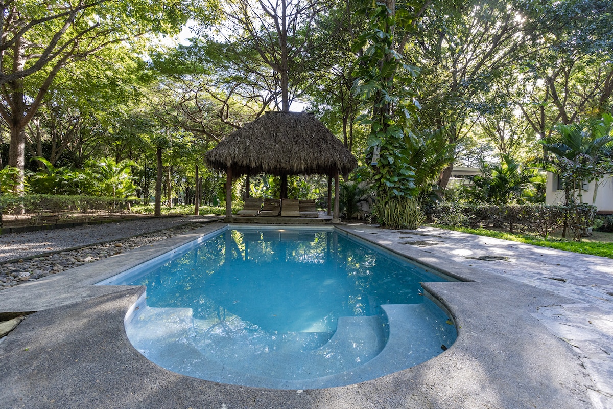 Santa Cruz à San Juan del Sur vous souhaite la bienvenue. Réveillez-vous le matin et profitez d'une vue imprenable sur l'océan sur la baie de San Juan del Sur. Prenez un bain dans votre piscine privée entourée de palmiers et de plantes tropicales. Vous avez une intimité totale dans votre propre pool house. À seulement 5 minutes à pied de la plage et de la ville de San Juan del Sur. Mais Santa Cruz est assez loin de la ville pour être nichée dans votre intimité avec votre piscine privée. Nouveau avec ROKU-TV.
