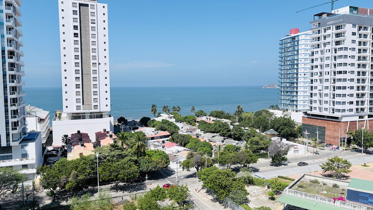 Une *suite moderne entièrement meublée* à Santa Marta, à quelques pas de la plage de Salguero et à proximité d'El Rodadero, l'un des sites touristiques les plus populaires de la ville. ✨ Points forts : piscine sur le toit, jacuzzis, sauna, bain turc, salle de jeux et salle de sport. PLUS ⬇️. Le bâtiment dispose d'un parking gratuit pour les visiteurs, sous réserve de disponibilité. La suite a une vue sur la montagne. Que vous cherchiez à vous détendre ou à explorer, cette suite est le point de départ idéal pour votre séjour à Santa Marta.