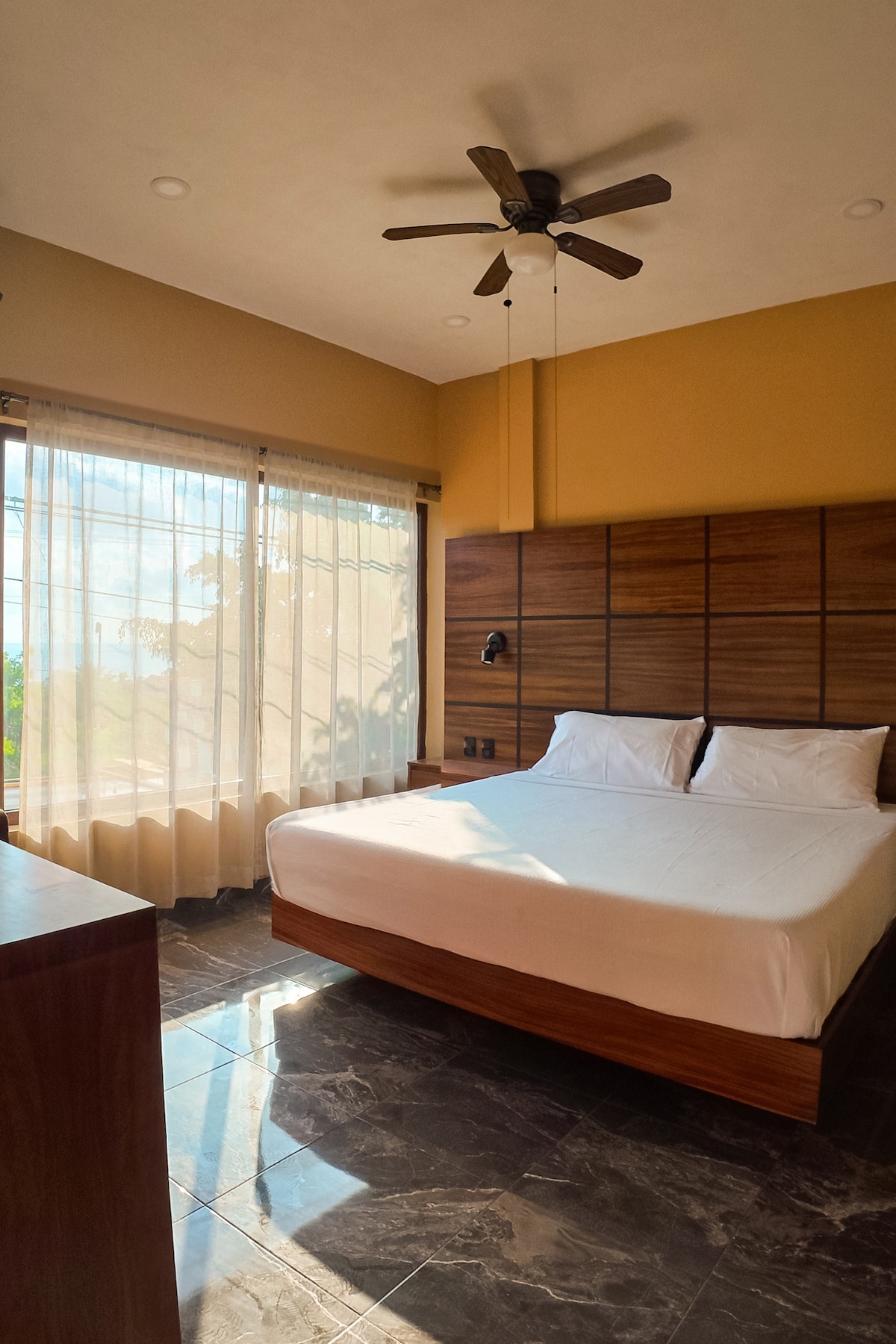 Suite confortable avec lit Queensize, Smart TV, climatisation, ventilateur de plafond, cuisine, salle de bain et jacuzzi privé. Profitez des couchers de soleil et détendez votre esprit en contemplant la vue panoramique sur la ville, l'océan et les montagnes depuis votre jacuzzi privé. Nous sommes à Punta Zicatela, à 7 minutes à pied de la plage, du principal spot de surf, des restaurants, des bars et de la zone commerciale. Proche de tout, mais loin de l'agitation de la fête. Nous avons Internet Starlink.