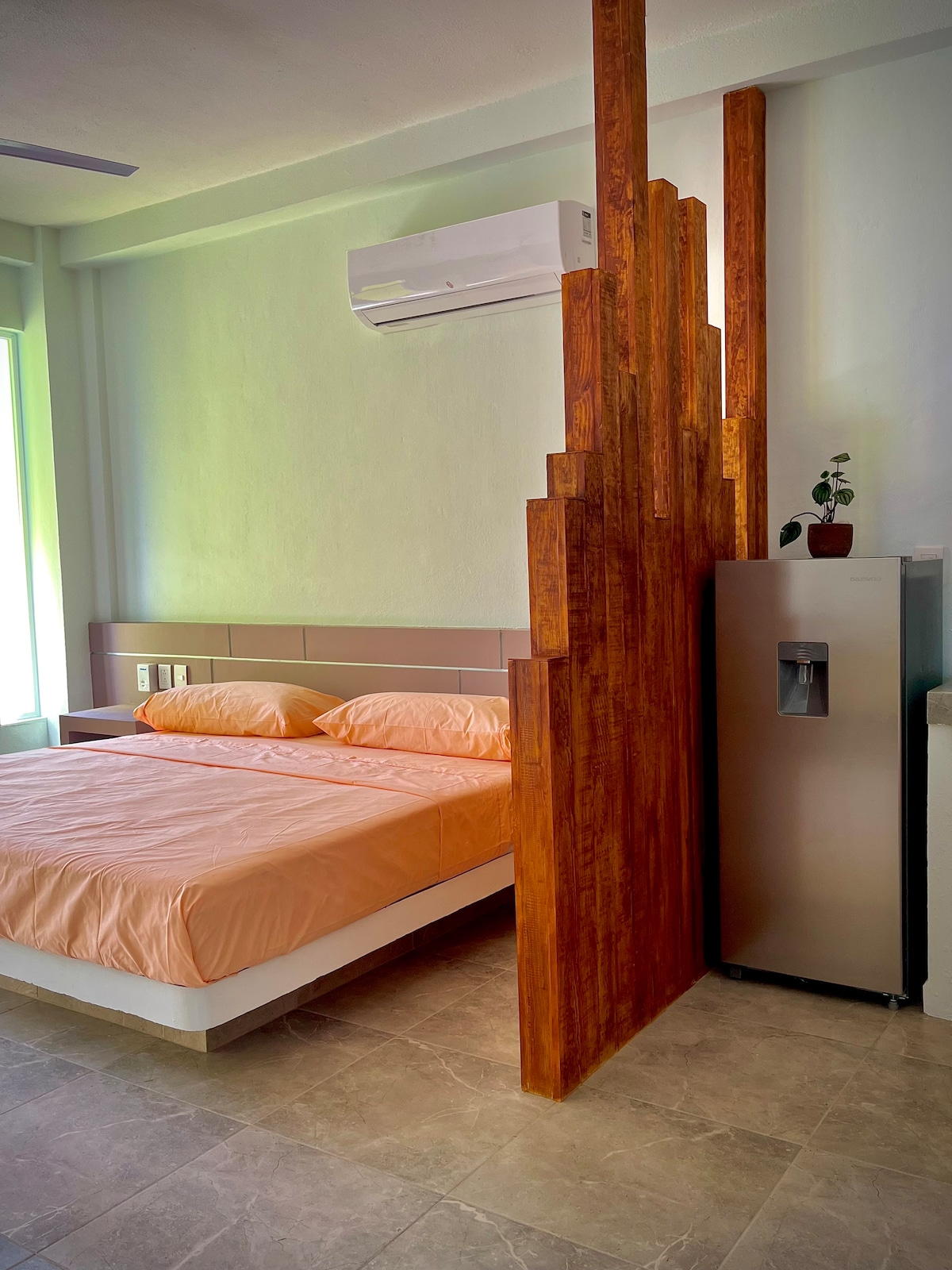Incroyable suite récemment rénovée, idéale pour une ou deux personnes, vous profiterez d'un lit king size, d'une télévision connectée, d'une connexion Wi-Fi haut débit, d'une salle de bain privée et d'un accès à une terrasse et une piscine. À seulement 3 pâtés de maisons de la plage de Zicatela et à 3 pâtés de maisons de La Punta, il est assez loin du bruit pour se reposer, mais à proximité de la zone commerciale. La suite dispose de stores occultants pour maximiser le repos et l'intimité. Bienvenue à réserver si vous avez des questions, nous nous ferons un plaisir de vous aider, vous pouvez nous joindre à tout moment. Nous disposons d'un service de personnel à temps plein.