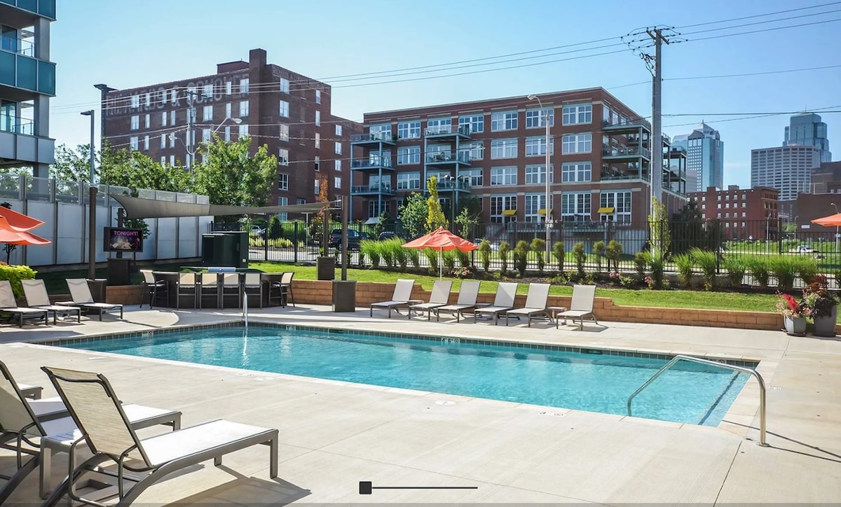 Appartement d'une chambre propre et pratique. À 20 minutes de l'aéroport et à 8,7 miles du stade. Situé dans la communauté dynamique, créative et diversifiée de River Market avec un accès à de nombreuses attractions et zones de divertissement de Kansas City. Prenez le tramway gratuit jusqu'à Union Station, Crossroads, Power & Light District/T-Mobile Center, Convention Center et plus encore. Votre séjour comprend un accès à la piscine et au centre de remise en forme, ainsi qu'une cour communautaire sur le toit avec vue sur la ligne d'horizon. Fermez le KC Current soccer.
