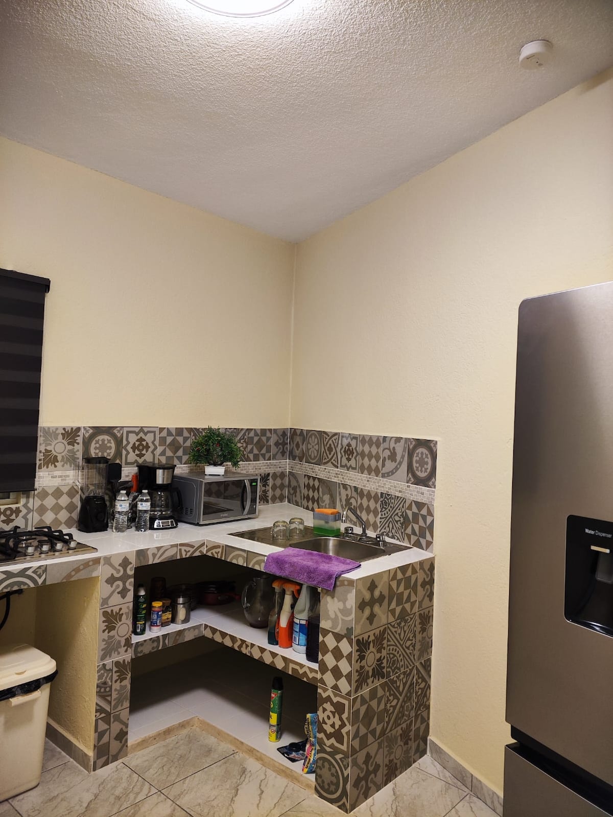 Restez avec nous, nous assainissons avant chaque séjour, ne risquez pas ailleurs¡ Récemment rénové et adapté avec une décoration moderne et chaleureuse. La meilleure option pour les voyageurs d'affaires ou les familles en vacances, nous avons tous les services et les meilleurs équipements. Serviettes et draps frais. Cuisine entièrement équipée avec tout ce dont vous avez besoin pour des séjours longue durée. Tout nouveau système de climatisation mini-split dans les chambres dispose également d'un garage privé avec portail électrique pour le confort et la sécurité.