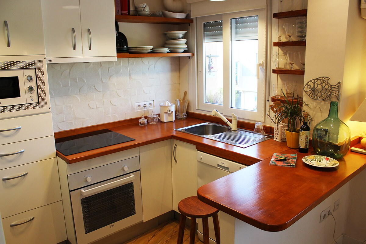 Appartement indépendant nouvellement construit dans un immeuble résidentiel central. Entièrement équipé. Il dispose d'une chambre, d'une salle de bain complète (avec douche, deux lavabos et toilettes), d'une cuisine complète (y compris lave-vaisselle et lave-linge) ouverte sur un grand salon. Tout l'appartement est extérieur, avec une grande cour avant, très lumineux et calme. Il dispose de hauts plafonds et de la climatisation chaud/froid, TV, Wifi 1 Go, etc. Nous offrons des produits de petit déjeuner, transfert et recommandations locales.
