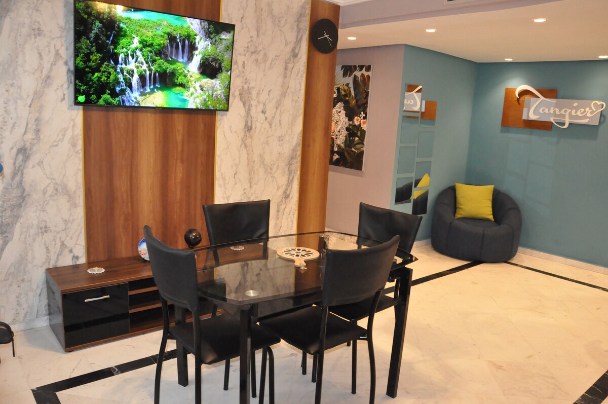 MERCI DE LIRE AVANT DE RESERVER Pour une expérience unique à Tanger, nous vous proposons cet appartement élégant aux couleurs sobres et épurées, en plein cœur de Tanger. A quelques pas des endroits branchés de Tanger, venez profiter du confort qu'offre cet appartement. Remarque important: - Appartement au 3éme étage SANS ASCENSSEUR. - Appartement destiné uniquement à une clientèle familiale ou couple mariés ou amis non mixtes.