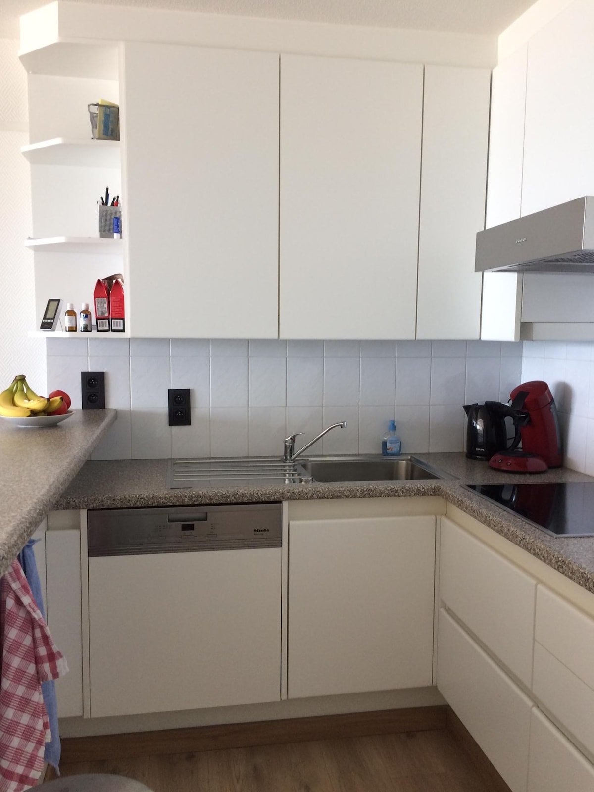 Appartement spacieux et très lumineux de 2 chambres récemment construit. Entièrement décoré avec placards intégrés, mobilier raffiné. Cuisine entièrement équipée (plaque de cuisson, réfrigérateur, congélateur, four, lave-vaisselle). Grande salle d'eau avec douche et grande baignoire, toilette séparée. Décoré avec une attention particulière à la luminosité et au luxe. Voisin calme. 500m à pied du supermarché, de la backery... 500m à pied de la plage. Beaucoup de restaurants (y compris les occasions de petit-déjeuner) dans les environs.