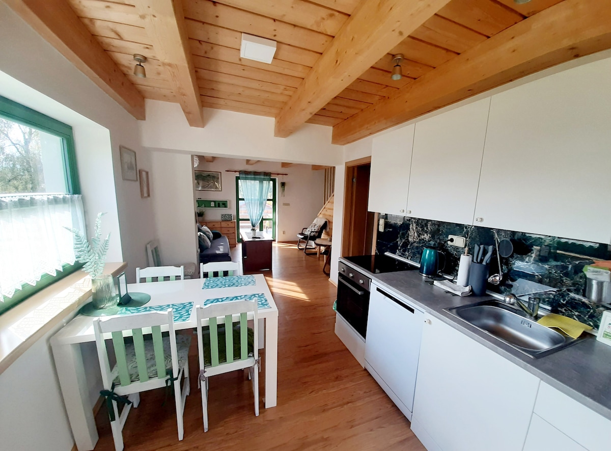 Appartement tout neuf, propre, confortable et familial. Basé dans une petite ville de Stachy dans la station de montagnes de Šumava. Vous pourrez profiter du ski (à seulement 7 minutes en voiture) ou du ski de fond en hiver ou de la randonnée, de la marche et du vélo lorsqu'il fait chaud. Ou détendez-vous et profitez simplement des tout nouveaux appartements dans la belle campagne :-)