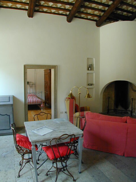 L'un des 10 appartements du château, au rez-de-chaussée, meublé avec des meubles et imprimés anciens, chambre double, grand salon avec cuisine et canapé-lit double - salle de bain avec baignoire et douche vintage, climatisation. 2 personnes, linge de lit et serviettes sont inclus dans le prix. Les personnes supplémentaires sont facturées 45 € / nuit. WiFi gratuit, aire de jeux extérieure et barbecue. Accès gratuit à la piscine avec jacuzzi+jacuzzi et minipool, ouvert toute l'année ! Frais de chien de 30 € par séjour (2 chiens maximum autorisés).
